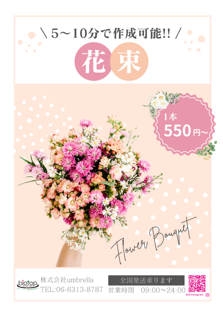 花束スピード作成 店前A1ポスターデザイン制作【biotop様】